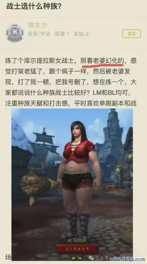 股票线上配资 魔兽老哥照着老婆捏幻化!被老婆发现暴打删号!